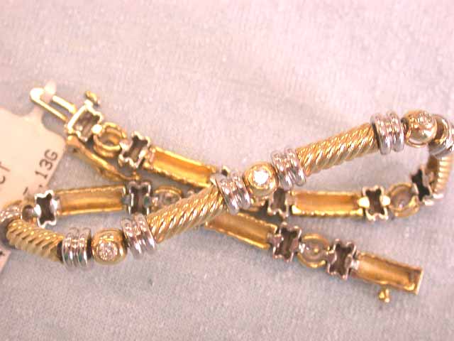 14k Gold Bracelet w/ Round Cut Diamonds - 0.50 carat, G color and VS clarity. The length is approximately 7 inches long and weighs 15.13 grams