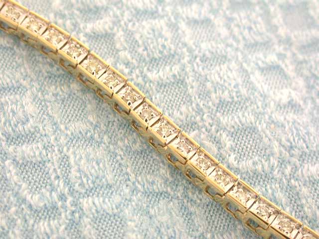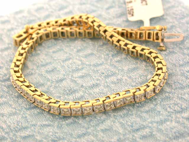 14k Gold Bracelet w/ Diamonds - 5.0 carats, G color and VS clarity. The length is approximately 7 inches long and weighs 18.58 grams