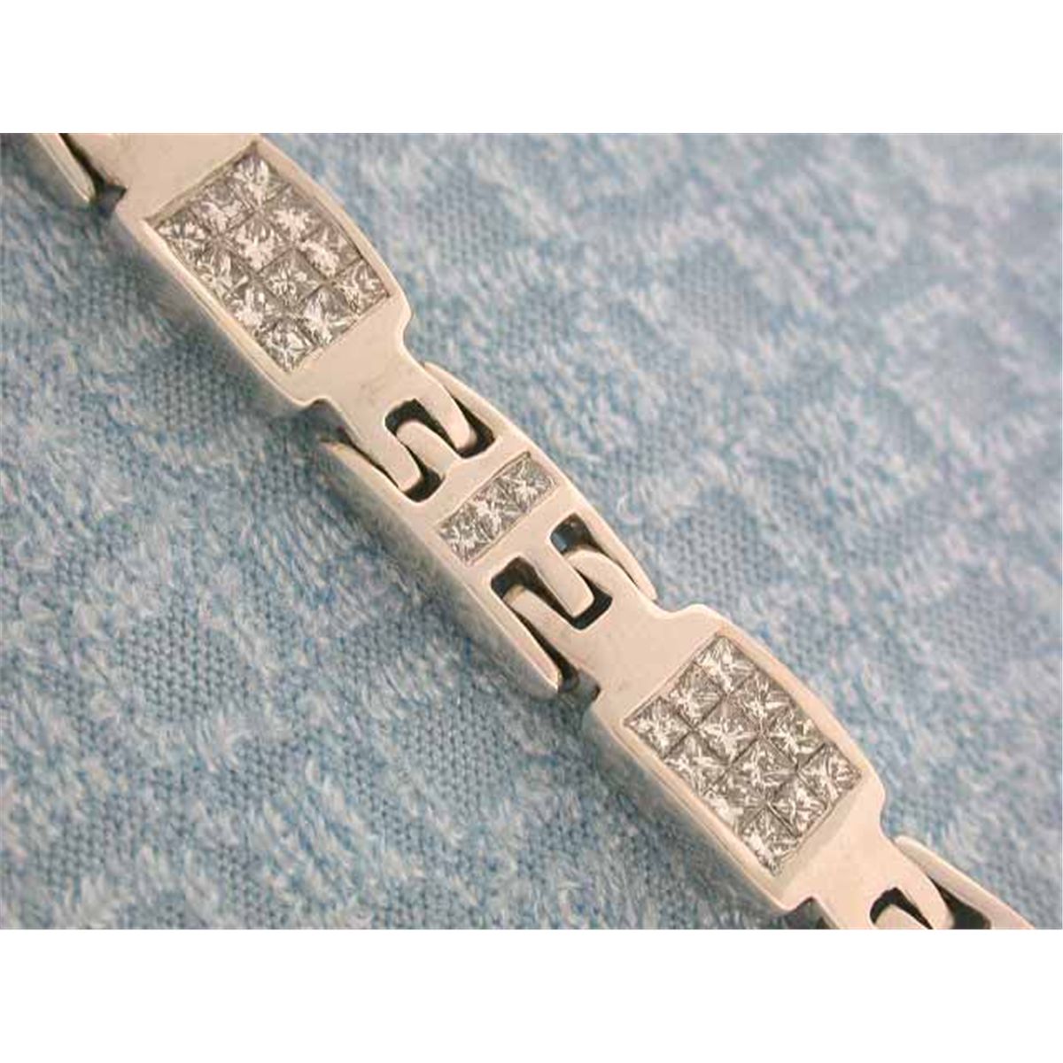 14k Gold Bracelet w/ Princess Cut Diamonds - 3.52 carats, G color and VS clarity. The length is approximately 7 inches long and weighs 26.90 grams