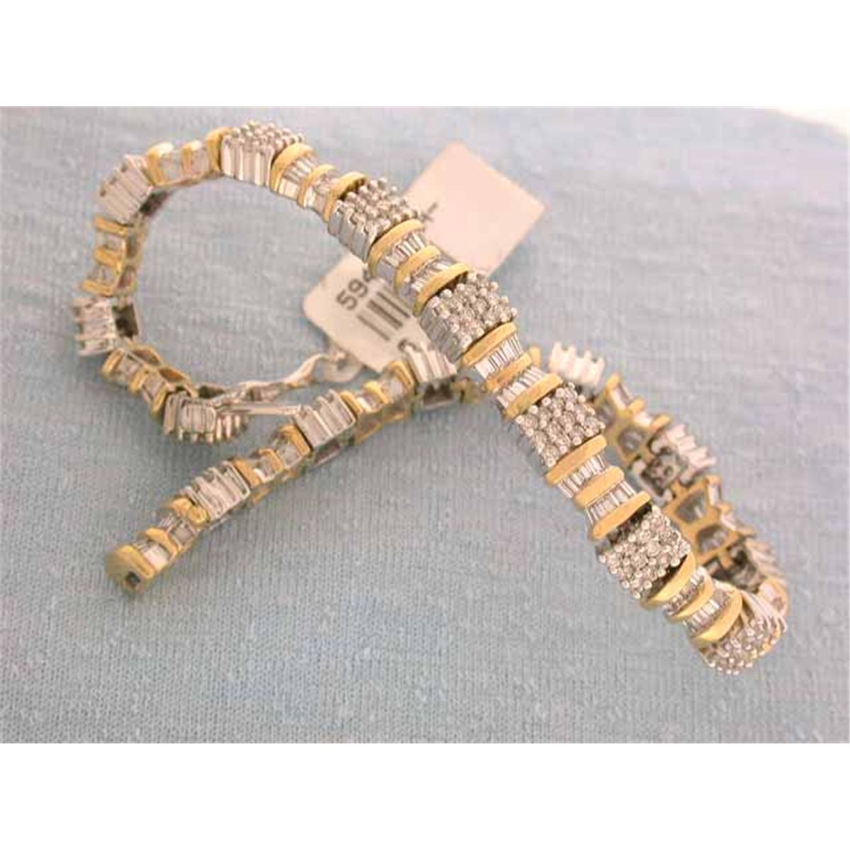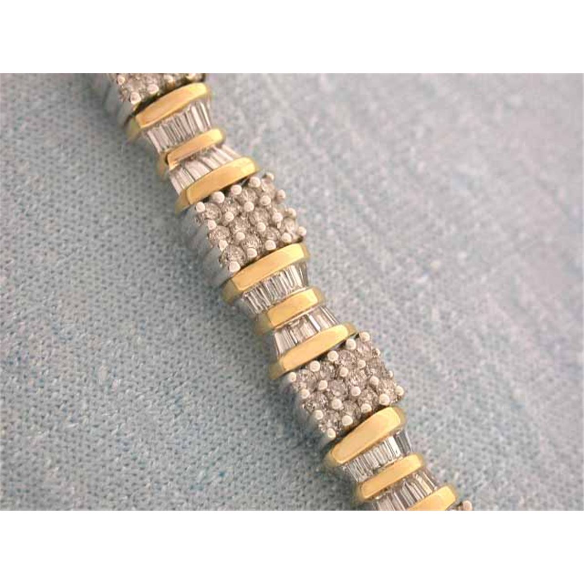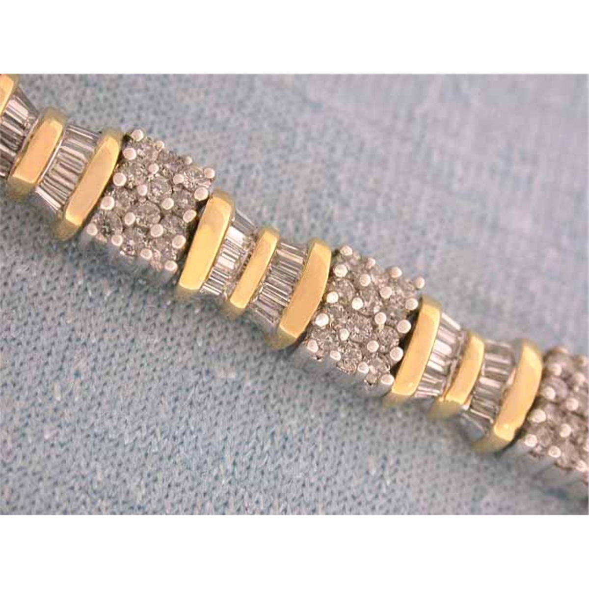 14k Gold Bracelet w/ Baguettes Cut Diamonds - 2.50 carats, G color and VS clarity and Round Cut Diamonds - 2.00 carats, G color and VS clarity. The length is approximately 7 inches long and weighs 21.74 grams