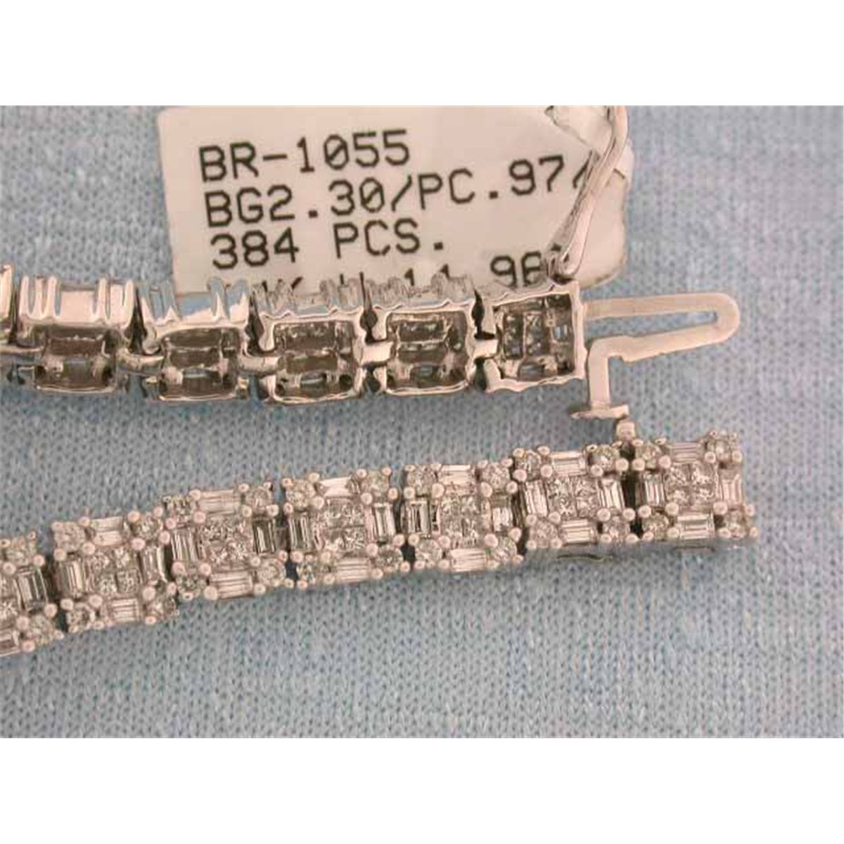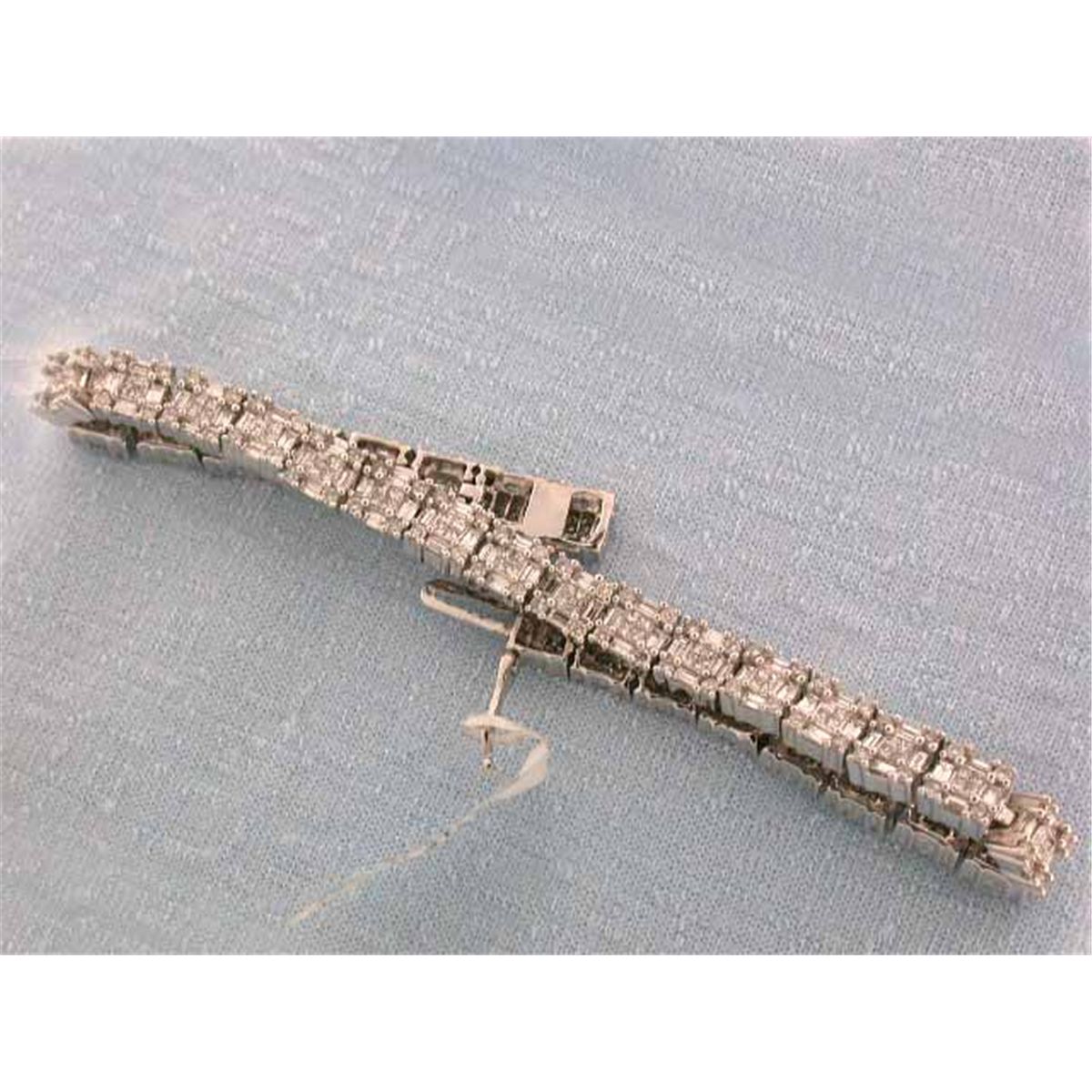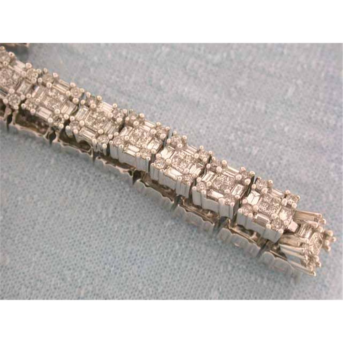 14k Gold Bracelet with Baguettes Cut Diamonds - 2.30 carats, G color and VS clarity; Princess Cut Diamonds - 0.97 carat, G color and VS clarity and Round Cut Diamonds - 0.23 carat, G color and VS clarity. The length is approximately 7 inches long and weighs 14.96 grams