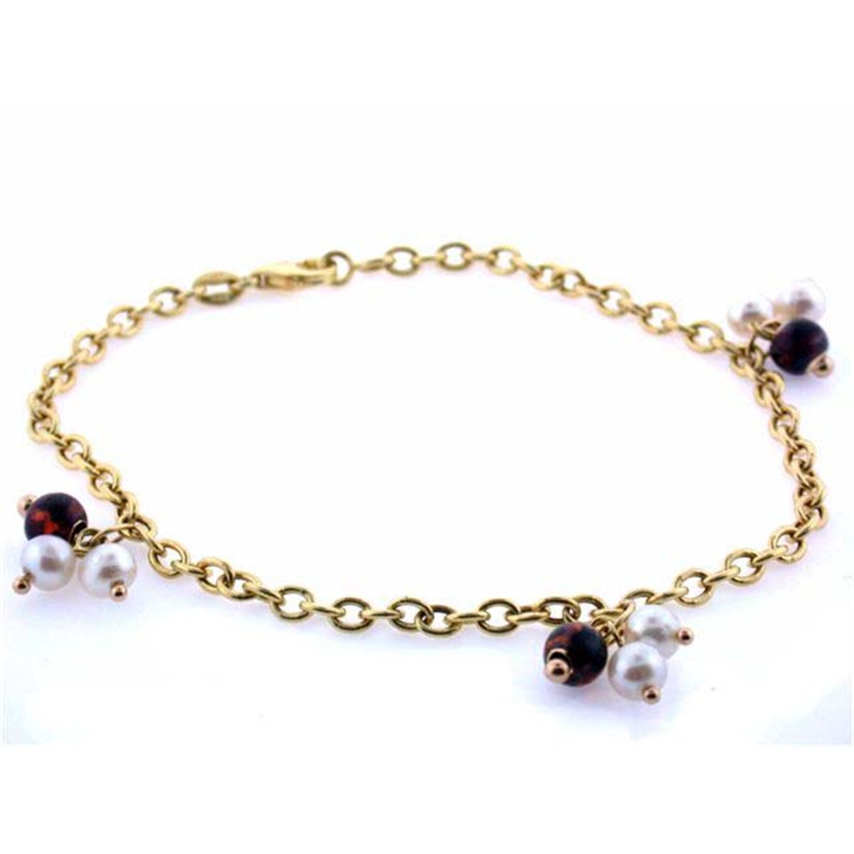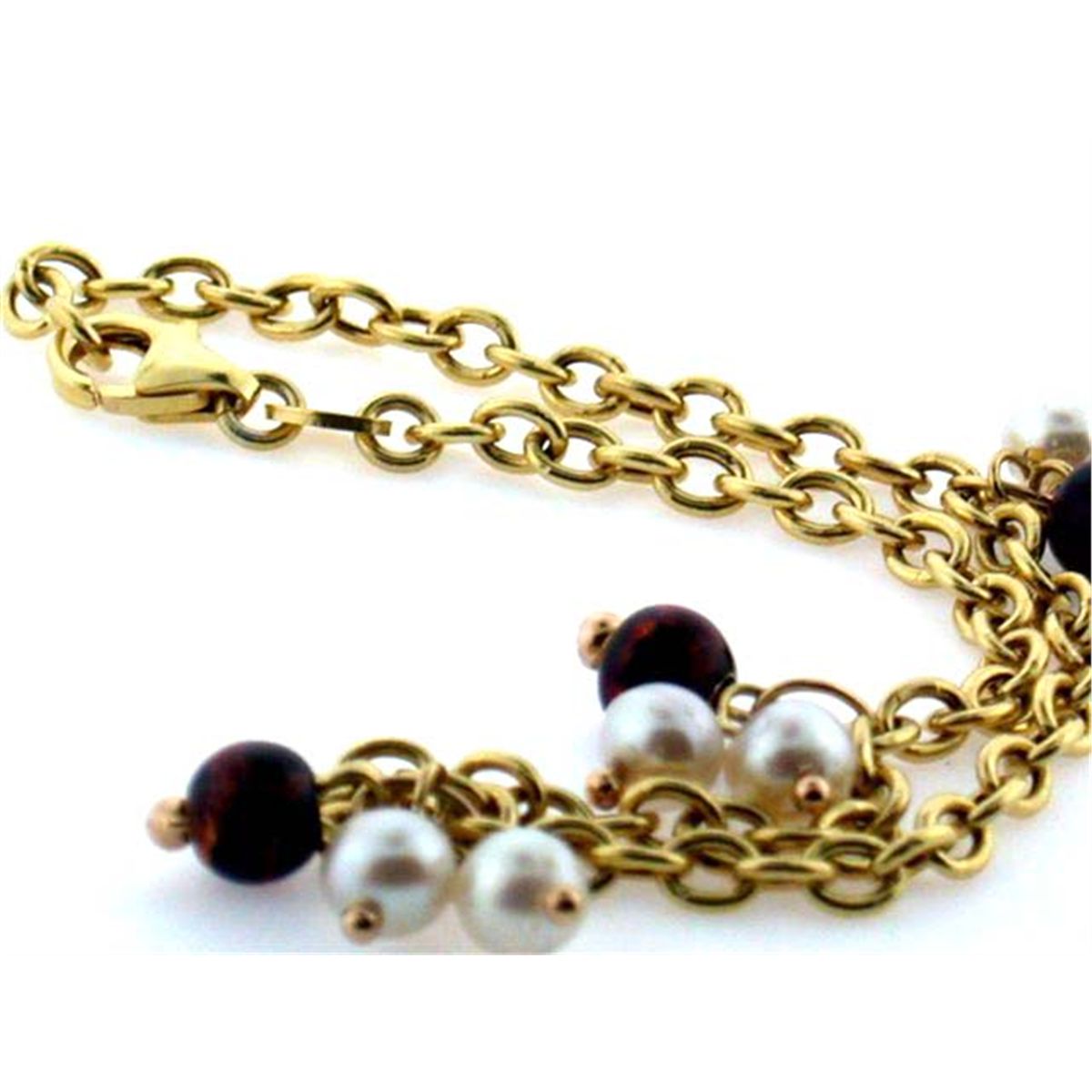 14k Gold Bracelet w/ Pearls and Gemstones. The length is approximately 7.5 inches long and weighs 4.5 grams
