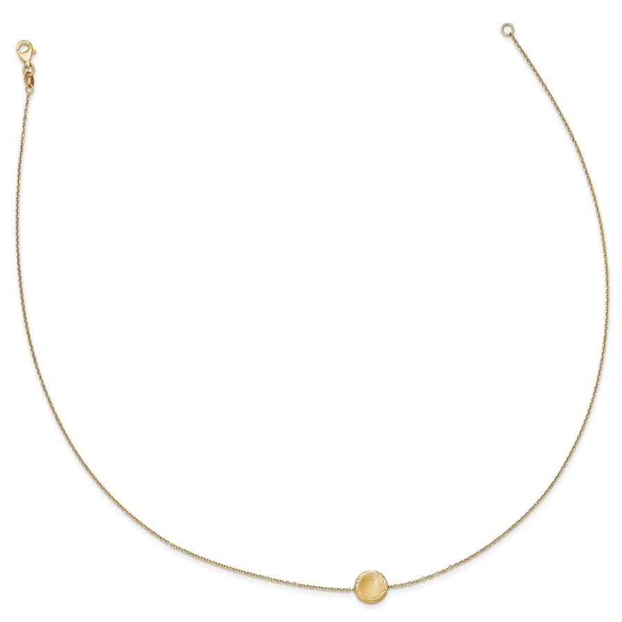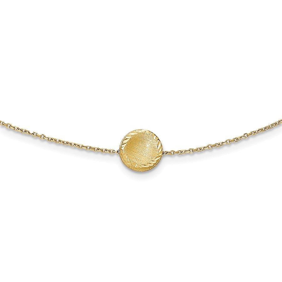 14k Gold Brushed & Polished Diamond Cut Circle Necklace