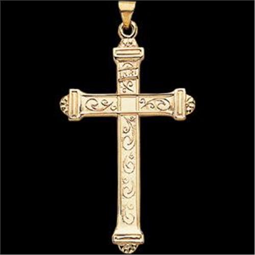 This very beautiful Cross is 14k Yellow Gold and it features Etruscan style Goldwork. The Cross measures 1 3/4" x 1 1/4" and it IS very impressive.