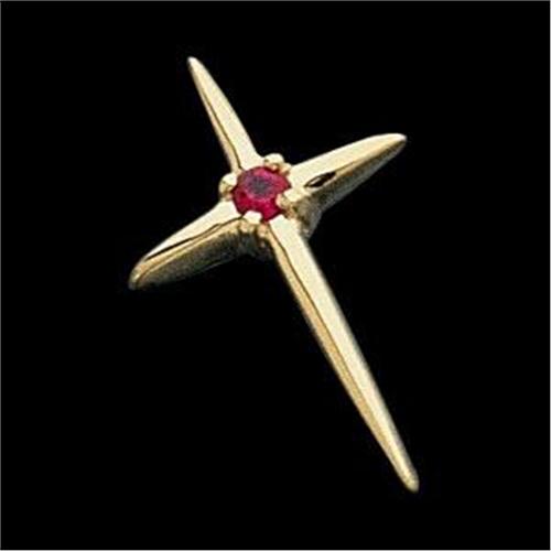 This 14k Yellow Gold Cross features a GENUINE RUBY = .05 Carats. The