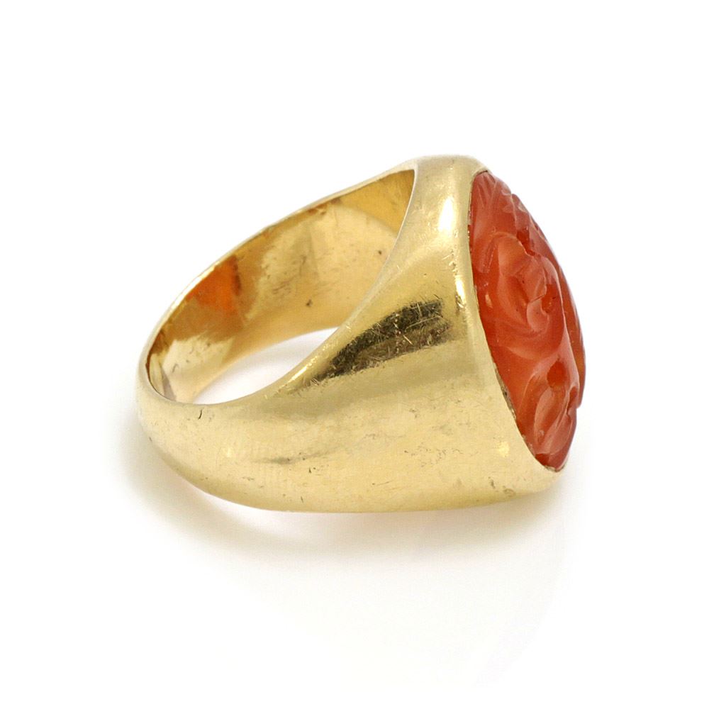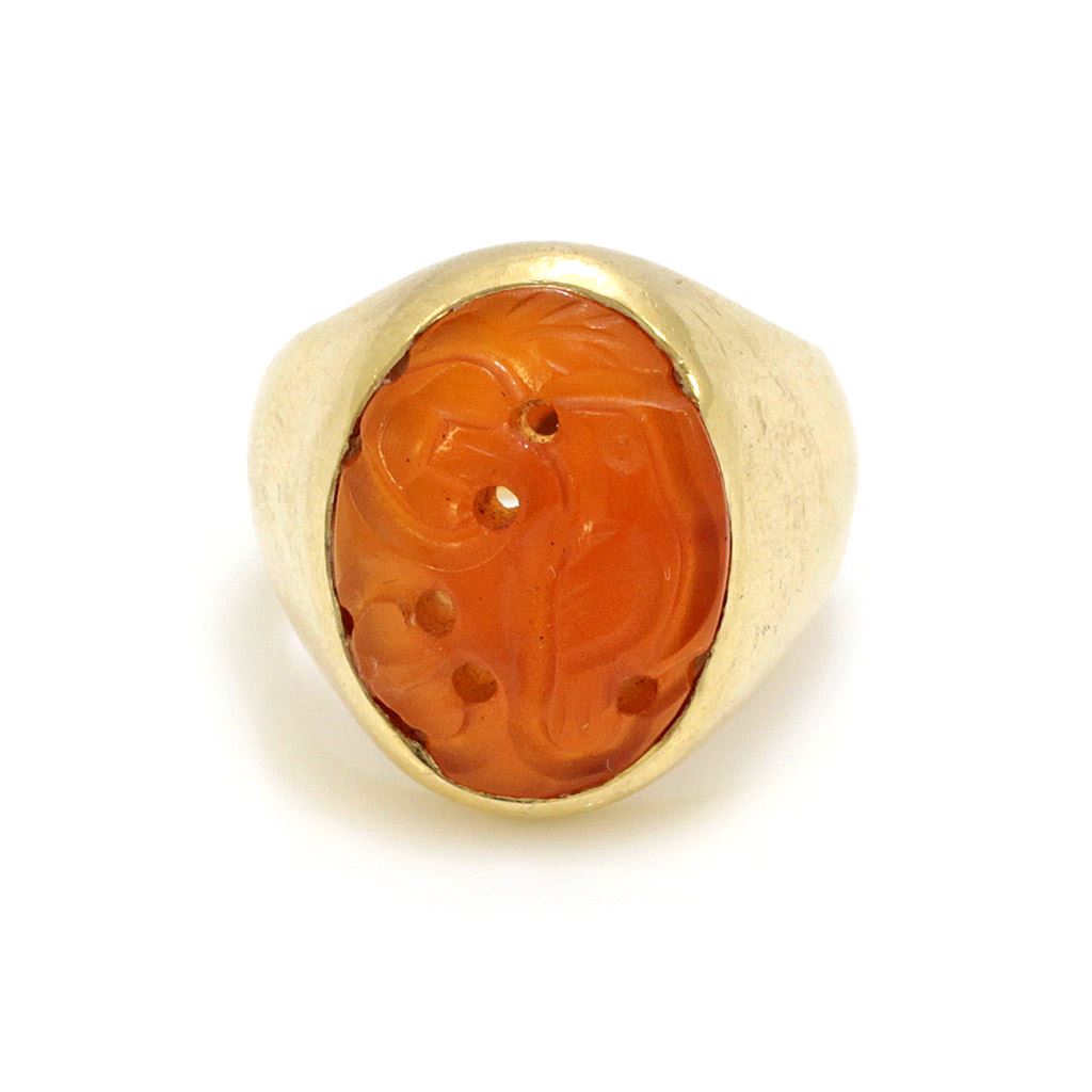 14k Gold Carved Carnelian Ring