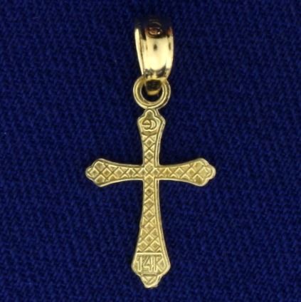In 14k yellow gold, 3/4" long with bale. 0.3g.