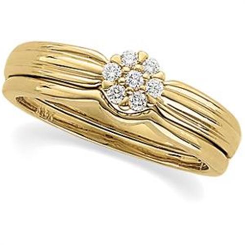 14k Yellow Gold BRIDAL SET featuring an Engagement Ring and matching Wedding Band. The Engagement Ring is set with a cluster of 7 Sparkling round Diamonds. The Diamond Total Weight = .16 Carats! The Diamonds are all well matched, in the 'SI' Quality Category and the 'I' Color Category. The matching 14k Gold Wedding Band is designed so that it fits together with the Engagement Ring perfectly! This Beautiful Bridal Set is a Size 7 and it can be resized.