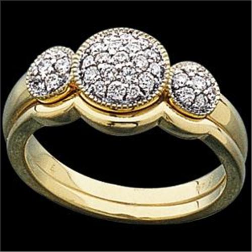 It is 14k Yellow Gold and features 3 clusters of 'sparkling'