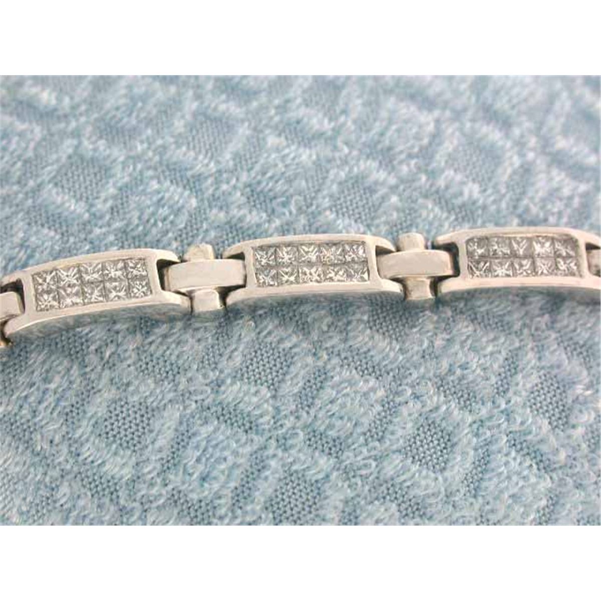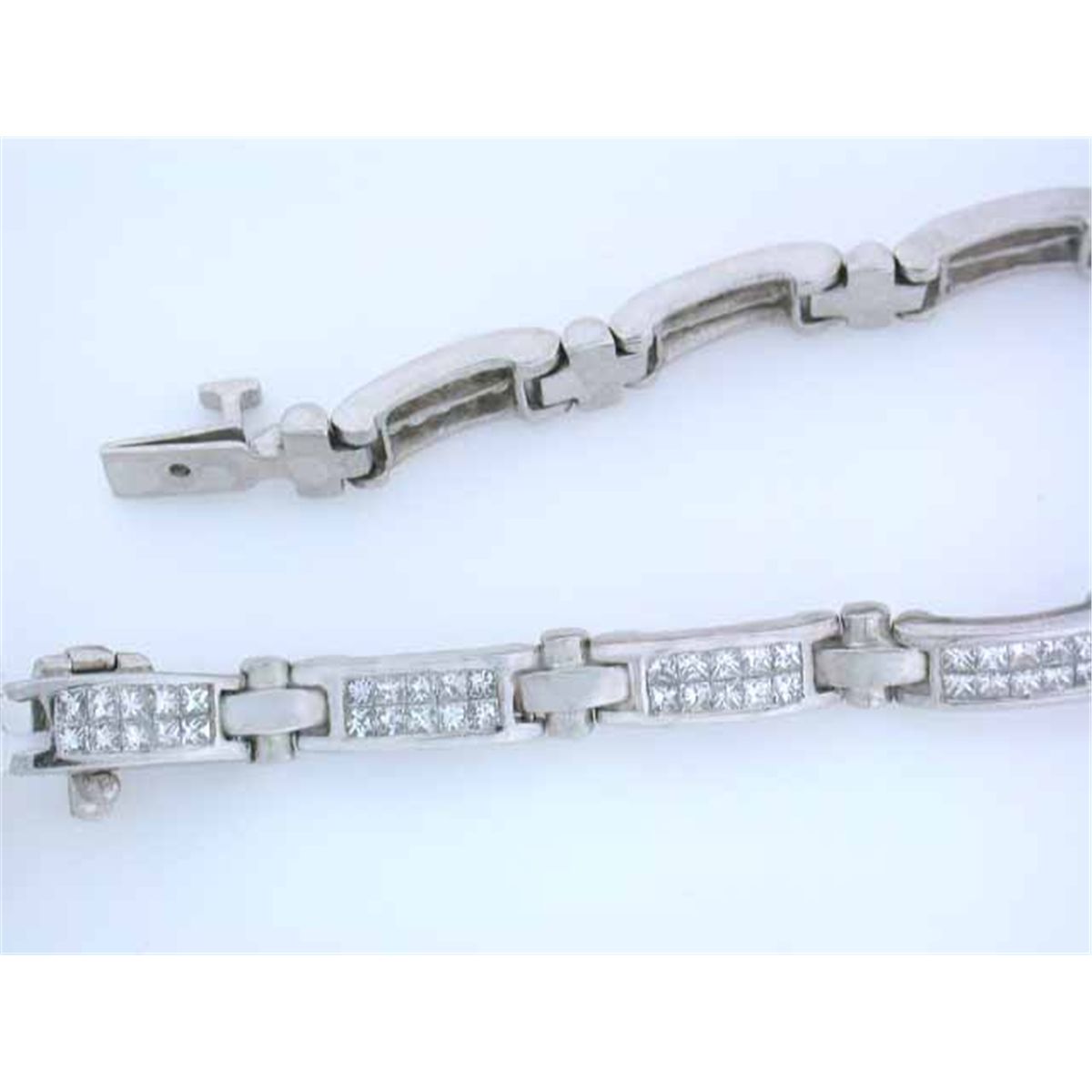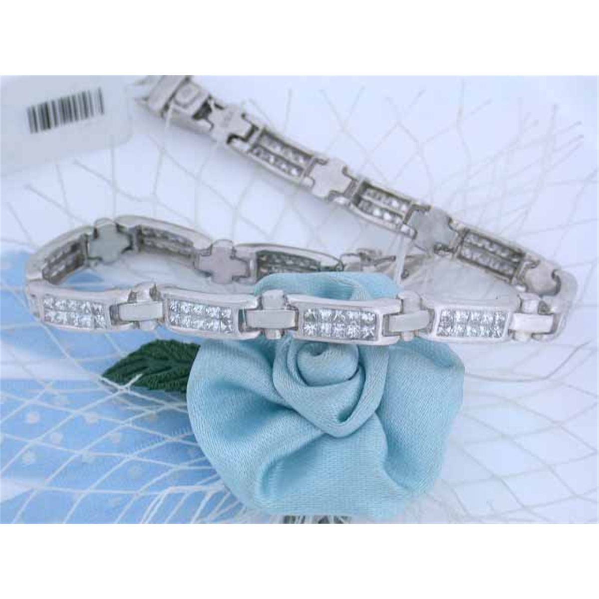 14k White Gold Bracelet. The bracelet has Diamonds - 3.06 carats, 120 pieces, princess cut, G color and VS clarity. The Length - approximately 7 inches long and Weight - 22.0 grams.