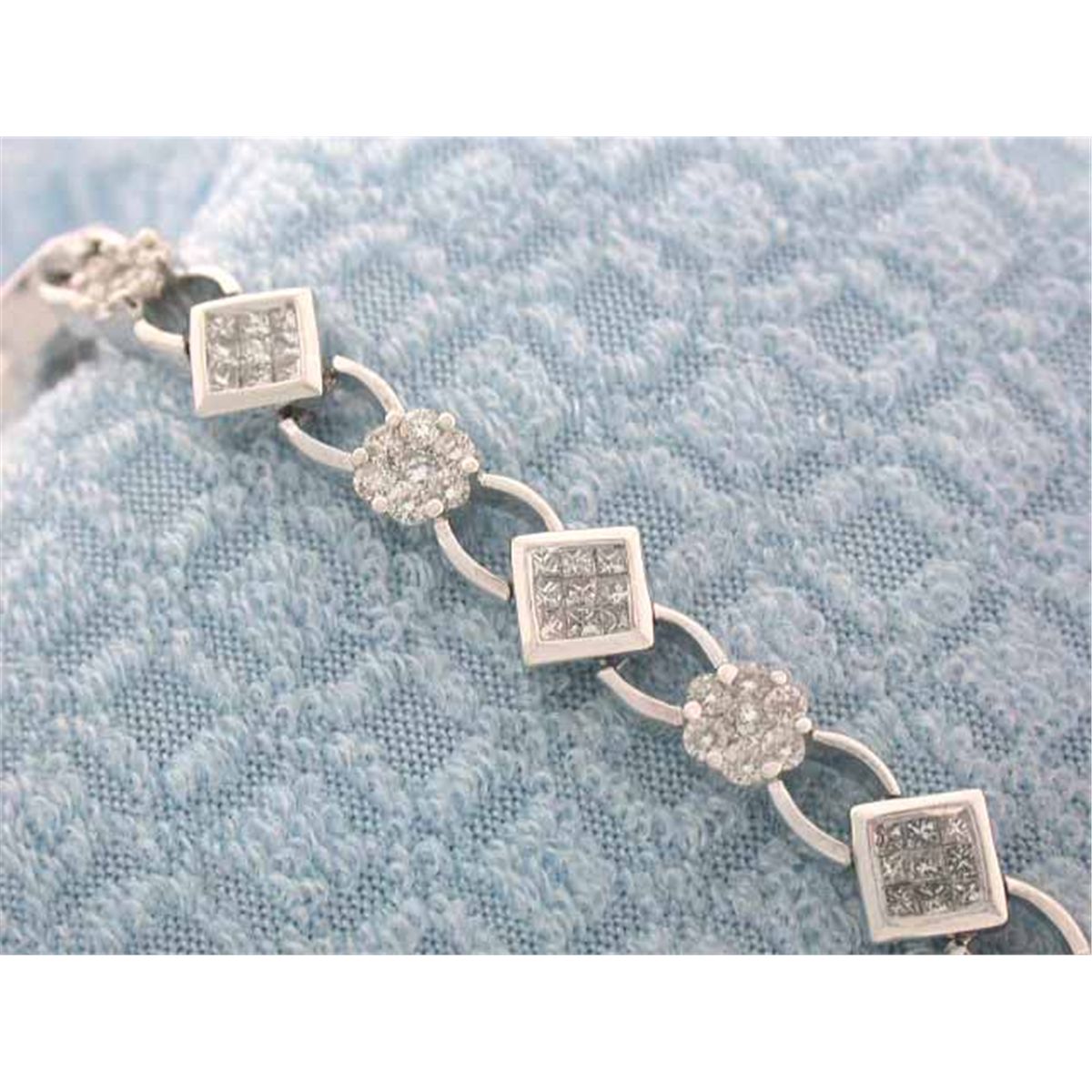 14k White Gold Bracelet. The bracelet has Diamonds - 3.0 carats, 160 pieces, G color and VS clarity. Its Length - approximately 7 inches long and Weight - 14.70 grams.