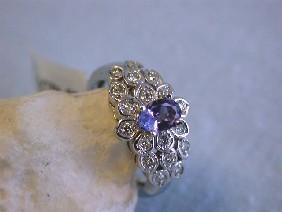 4k Gold Ring / Diamonds - 0.33 carat, round cut, 19 pieces / Tanzanite - 0.52 carat / Size - 6.75 / Weight - 5.08 grams