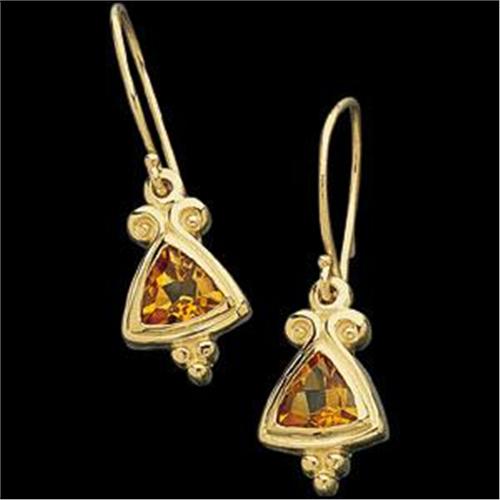 14k Yellow Gold Earrings each featuring a triangular Genuine CITRINE.