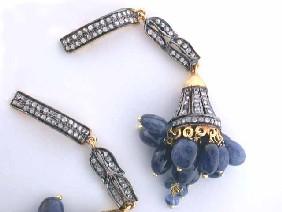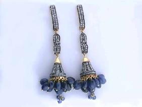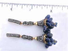 14k Gold and Silver Earrings with Diamonds - 1.48 carats and Sapphires - 29.2 carats. The sength is approximately 2 inches long and it weighs 14.60 grams