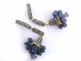 14k Gold Earrings with Diamonds, Silver and Sapphires