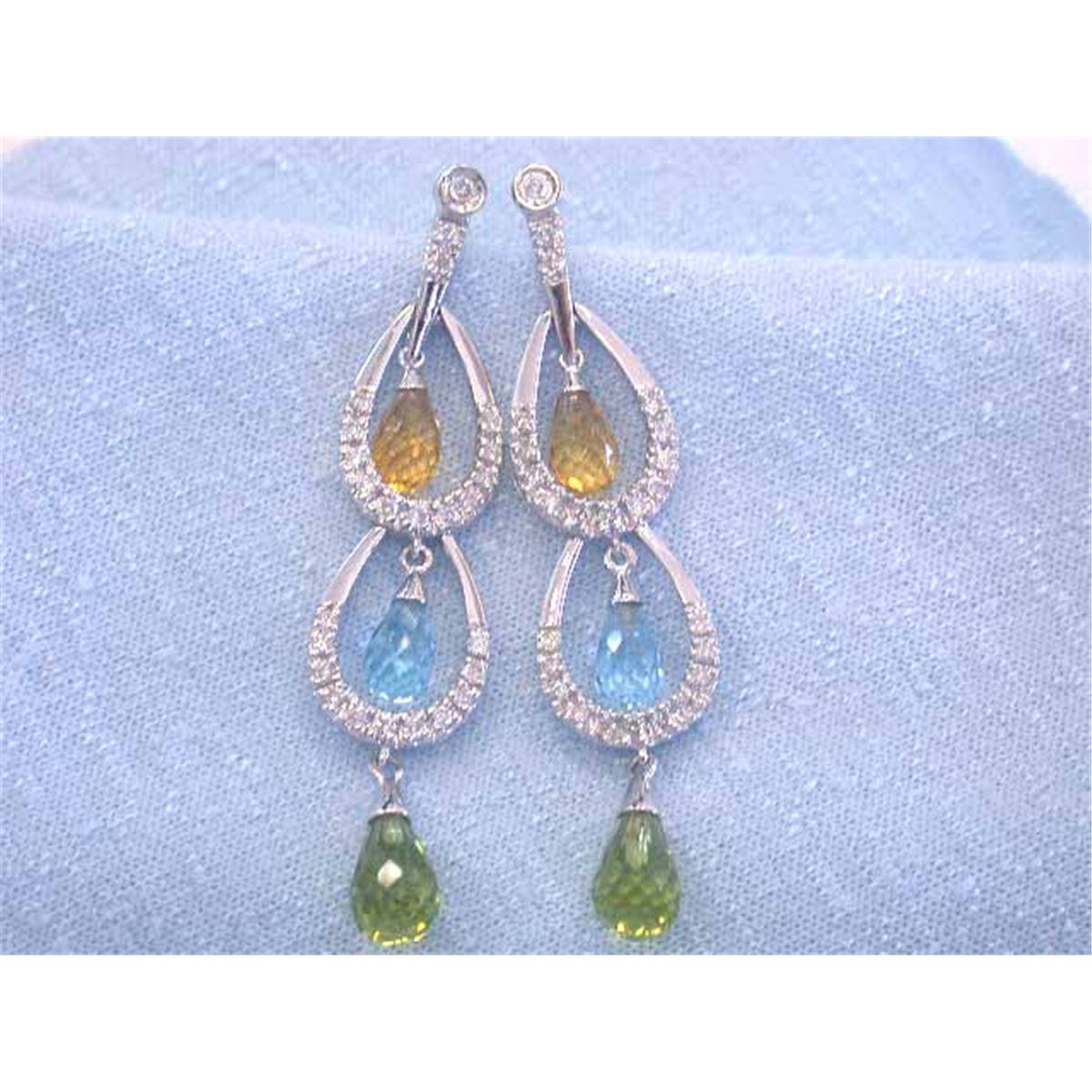 14k Gold Earrings w/ Diamonds - 0.50 carat, G color and VS clarity and Gemstones - 5.51 carats, Citrine, Topaz and Peridot. It weighs 5.4 grams
