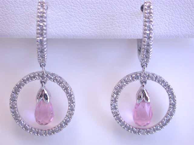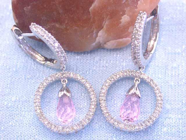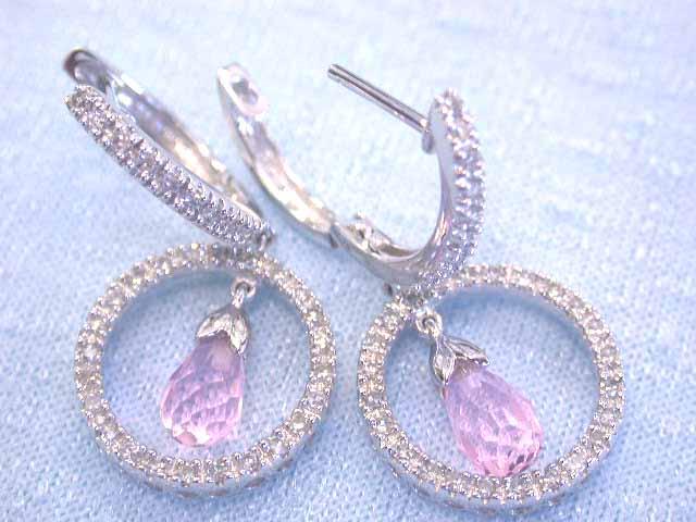 14k Gold Earrings w/ Diamonds - 0.37 carat, G color and VS clarity and Pink Quartz - 1.54 carat. It weighs 3.5 grams