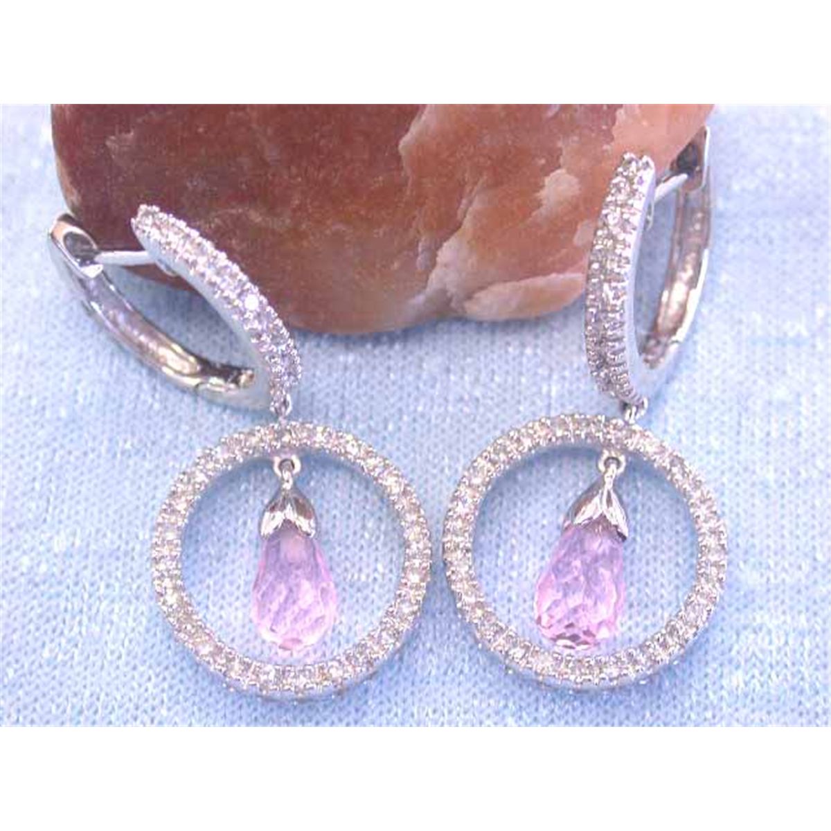 14k Gold Earrings w/ Diamonds - 0.37 carat, G color and VS clarity and Pink Quartz - 1.54 carat. It weighs 3.5 grams