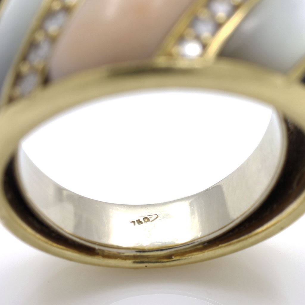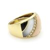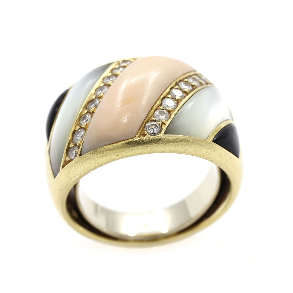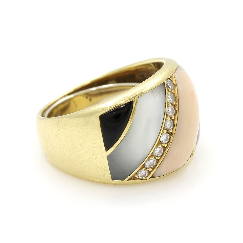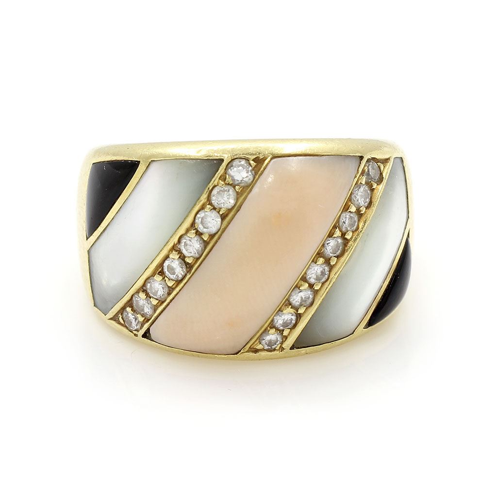 14k Gold, Diamond, Coral, Onyx & Mother of Pearl Inlay Ring