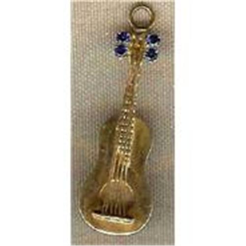 Signed "AC" 6 grammes of 14k gold. Beautiful detail. 4 small sapphire stones. Etched graduated fret. 6 strings.