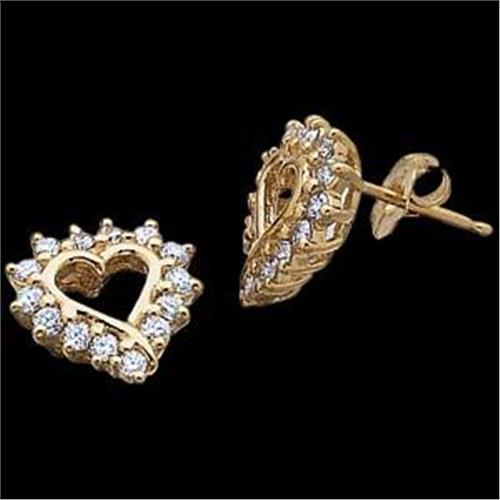 Yellow Gold HEART Shaped Earrings set with 'sparkling' round