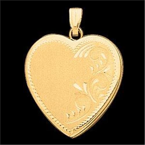 14k Yellow Gold HEART LOCKET Pendant featuring beautiful scrollwork and edging surrounding the Heart. It measures 21mm across and it opens for photos. A superb Gift idea.