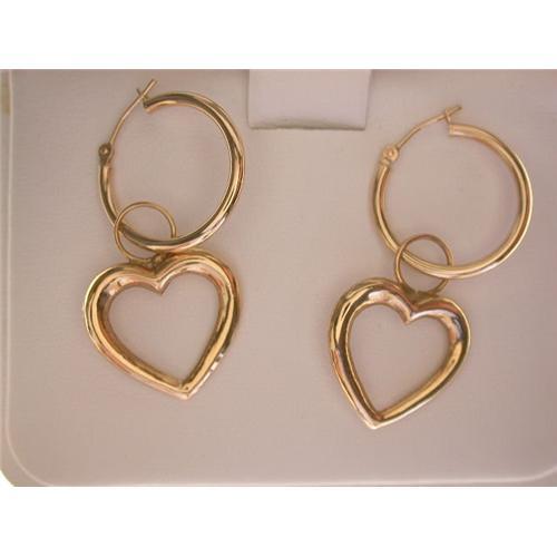 14k Yellow Gold heartshaped EARRING DANGLE JACKETS - to be worn with gold hoop earrings.