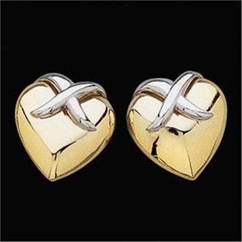 A beautiful pair of 14k Two Toned Gold Heart Earrings with a white gold "x" accent at the top of each Earring. They each measure 13.25 x 12.50mm.