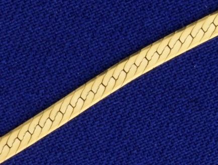 In 14K Yellow Gold.  7 inches long, 3mm wide.  1.8g