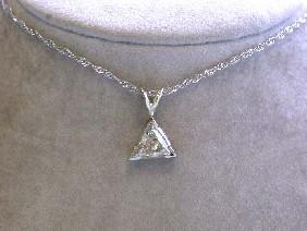 14k Gold Necklace with Diamonds - 1.06 carats, trillian cut in I color and SI3 clarity, approximately 8.9 x 8.9 mm; approximately 16 inches long, weighs 2.96 grams.