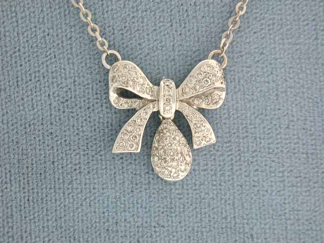 14k White Gold Necklace with Pendant of Round cut diamonds - 0.55 carat, 56 pieces, G color and VS clarity. Chain - approximately 17.5 inches long and Pendant - approximately 3/4 inch long X 3/4 inch wide. Weight - 6.0 grams.