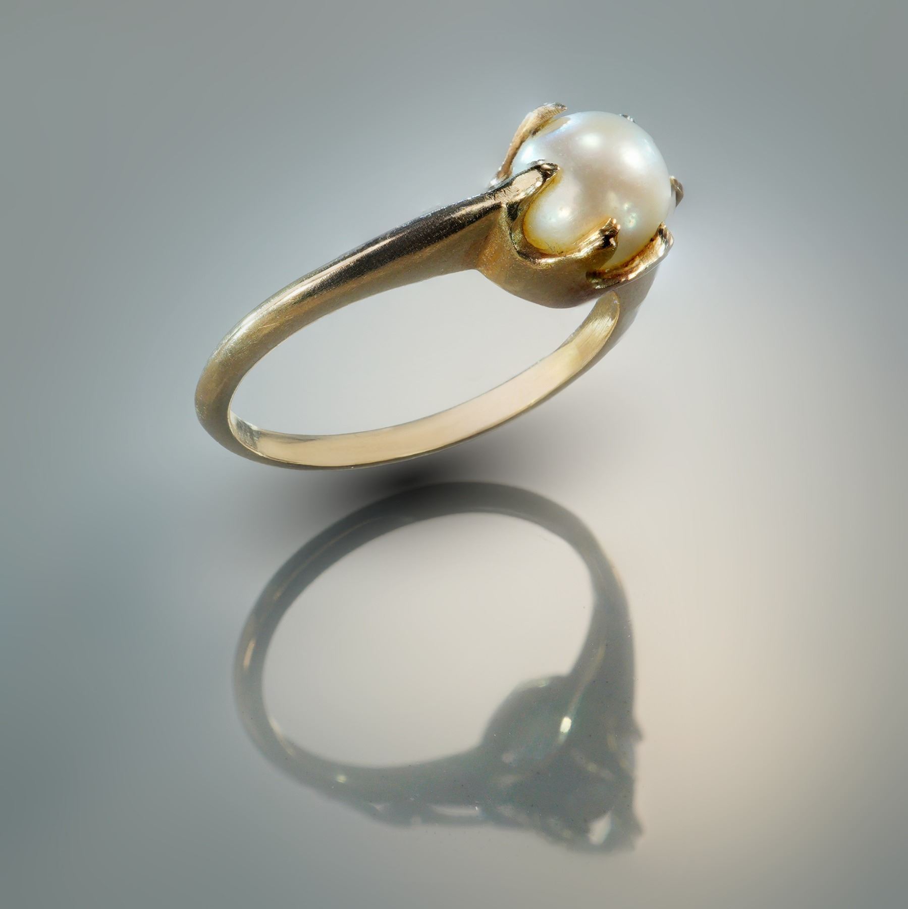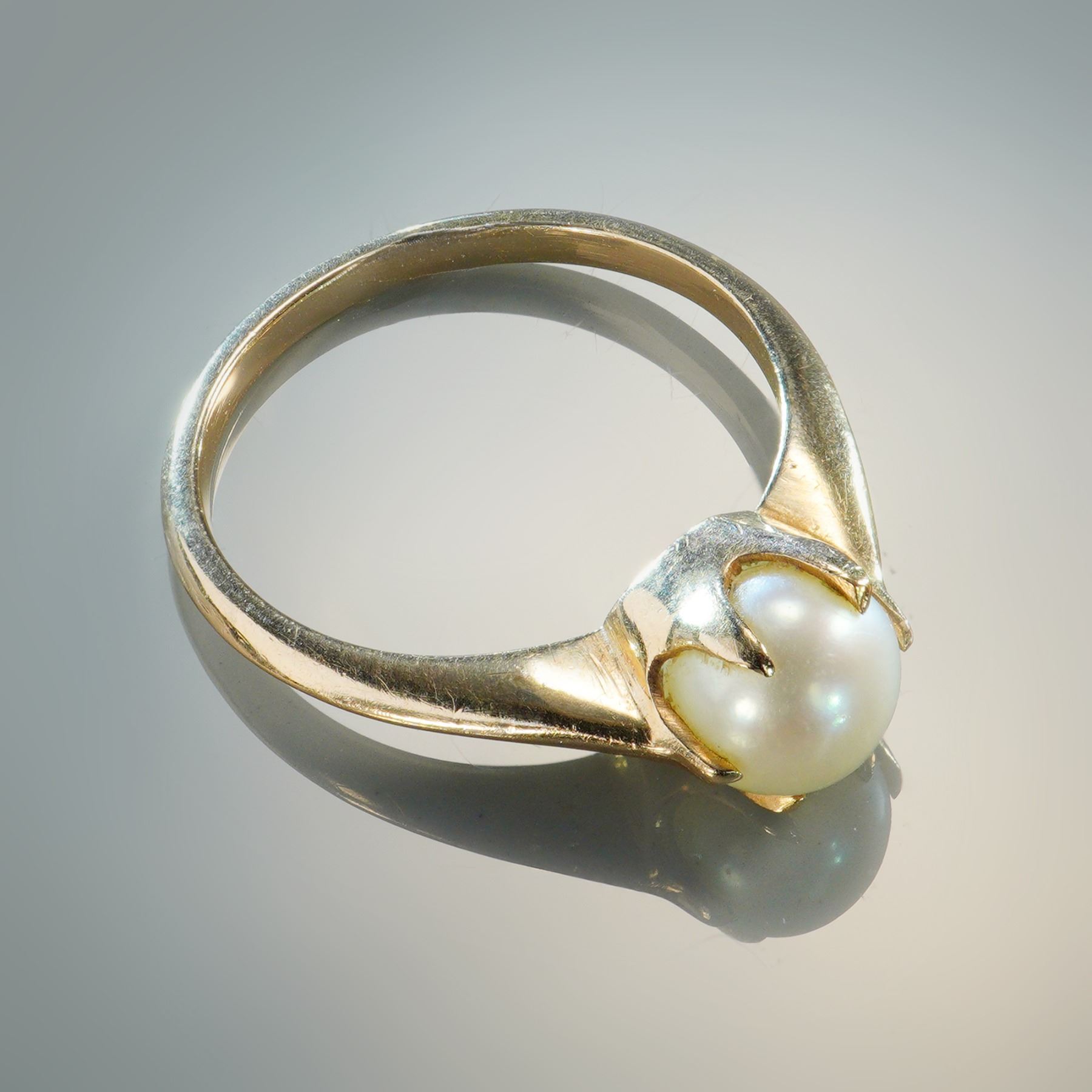A refined 14k gold ring centered with a luminous pearl held in a secure claw setting. The simplicity of the gold band enhances the natural elegance of the pearl, creating a timeless piece suitable for both daily wear and special occasions. Weight: 2.47g.
