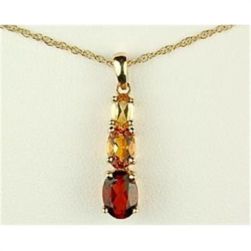 This 14k Yellow Gold Chain is 18" in length and suspended from it is a 14k Yellow Gold Pendant with 3 Gemstones: a GARNET, a TOPAZ, and a CITRINE.