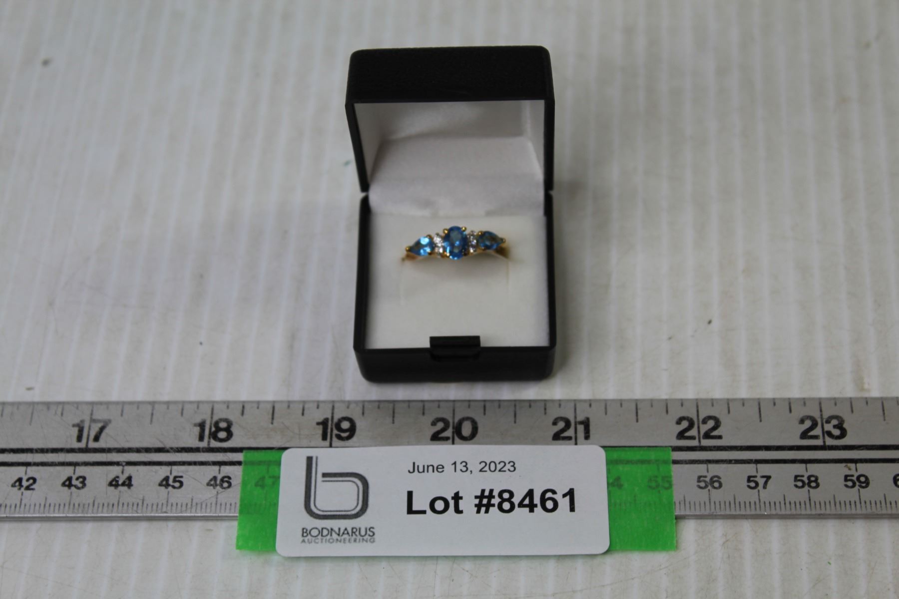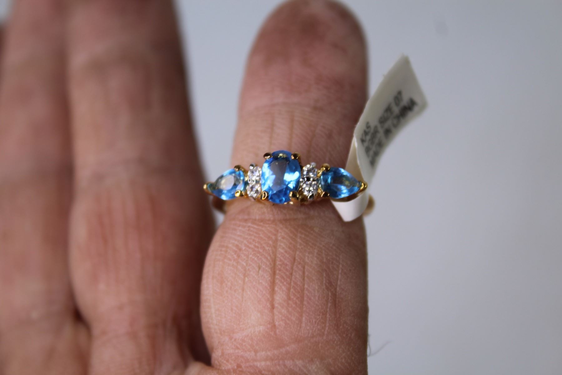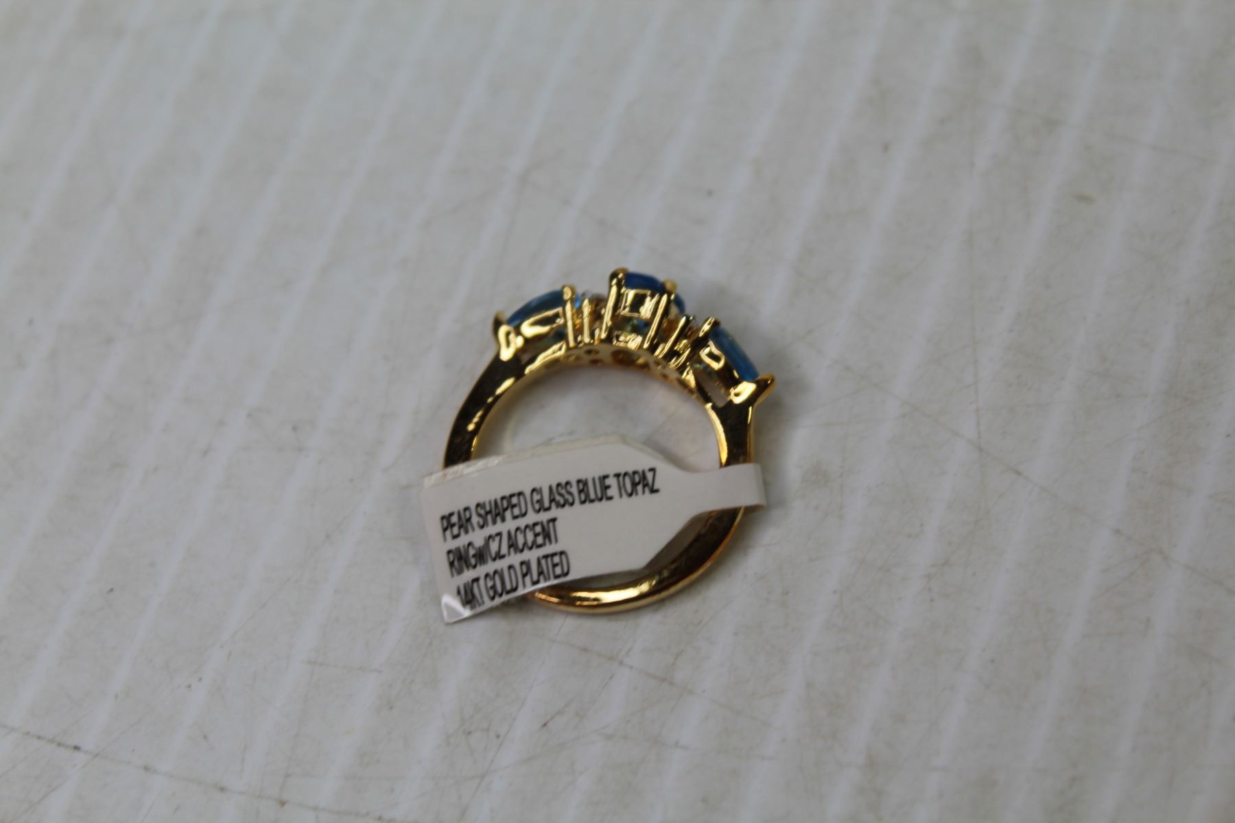 14k Gold Plated Ring - Pear Shape Blue Glass Topaz (size 7)