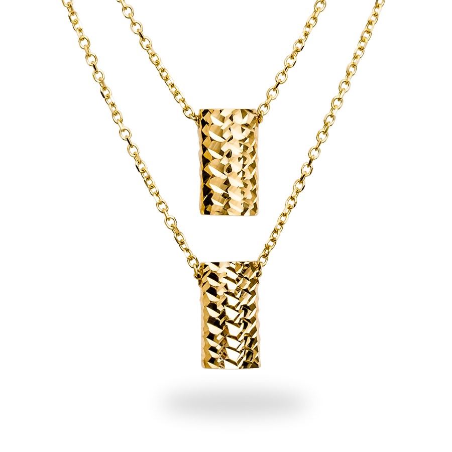 14k Gold Polished Diamond-Cut Rectangle Necklace