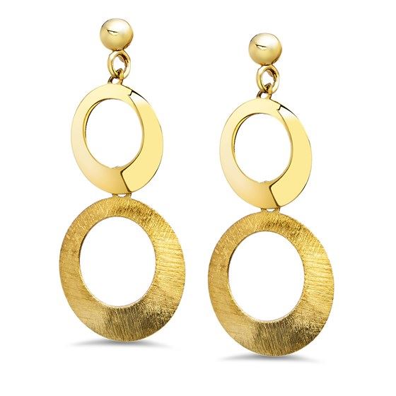 One piece 14k Gold Polished and Scratch Finish Circle Post Earrings