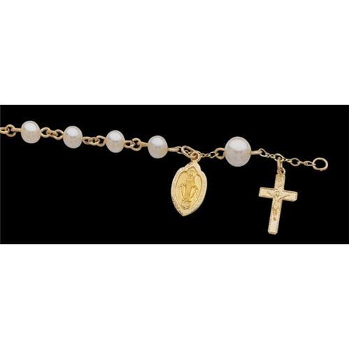 14k Yellow Gold Religious ROSARY BRACELET. There are Freshwater