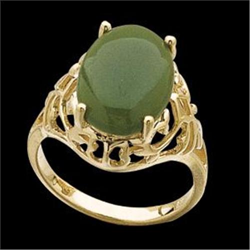 This 14k Yellow Gold ring features a beautiful Oval GREEN JADE measuring 14 x 10mm surrounded by very lovely gold openwork. The ring is a Size 7 and it can be resized either larger or smaller.