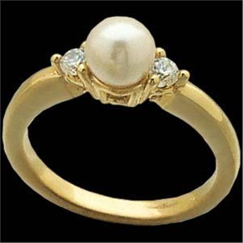 Classic 14k Yellow Gold Ring featuring a 6MM CULTURED PEARL. There is a Diamond set each side as accent to the Pearl, and the Diamond Total Weight = .08 Carats. This Beautiful Cultured Pearl is a Fine White color with an excellent lustre.