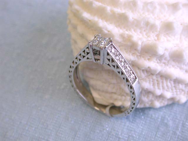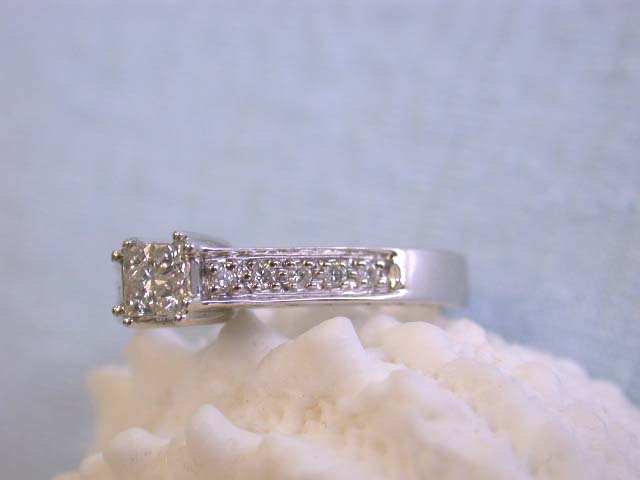 14k Gold Ring w/ Diamonds. This is a 14k Gold Ring w/ 0.15 carat Princess Cut Diamonds in G color and VS clarity and 0.10 carat Round diamonds in G color and VS clarity. The size of this is 6.75 and weighs 3.33 grams.