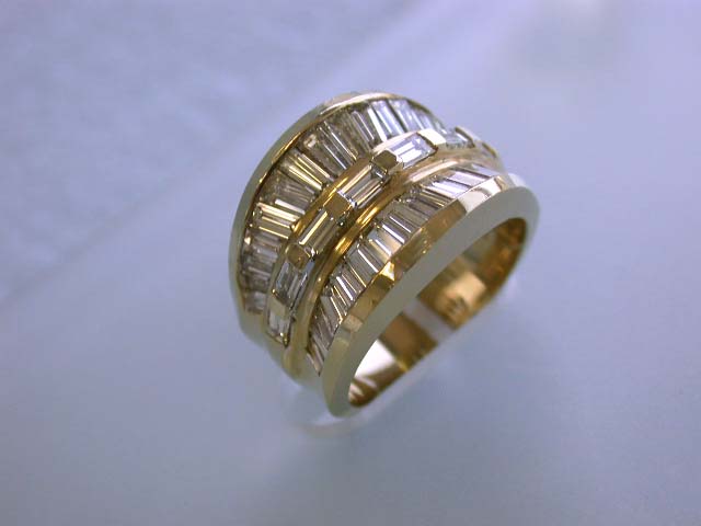 14k Gold Ring w/ Diamonds. This is a 14k Gold Ring w/ 2.75 carats Baguettes Cut Diamonds in G color and VS clarity. The ring size is 6.5 and weighs 13.0 grams.