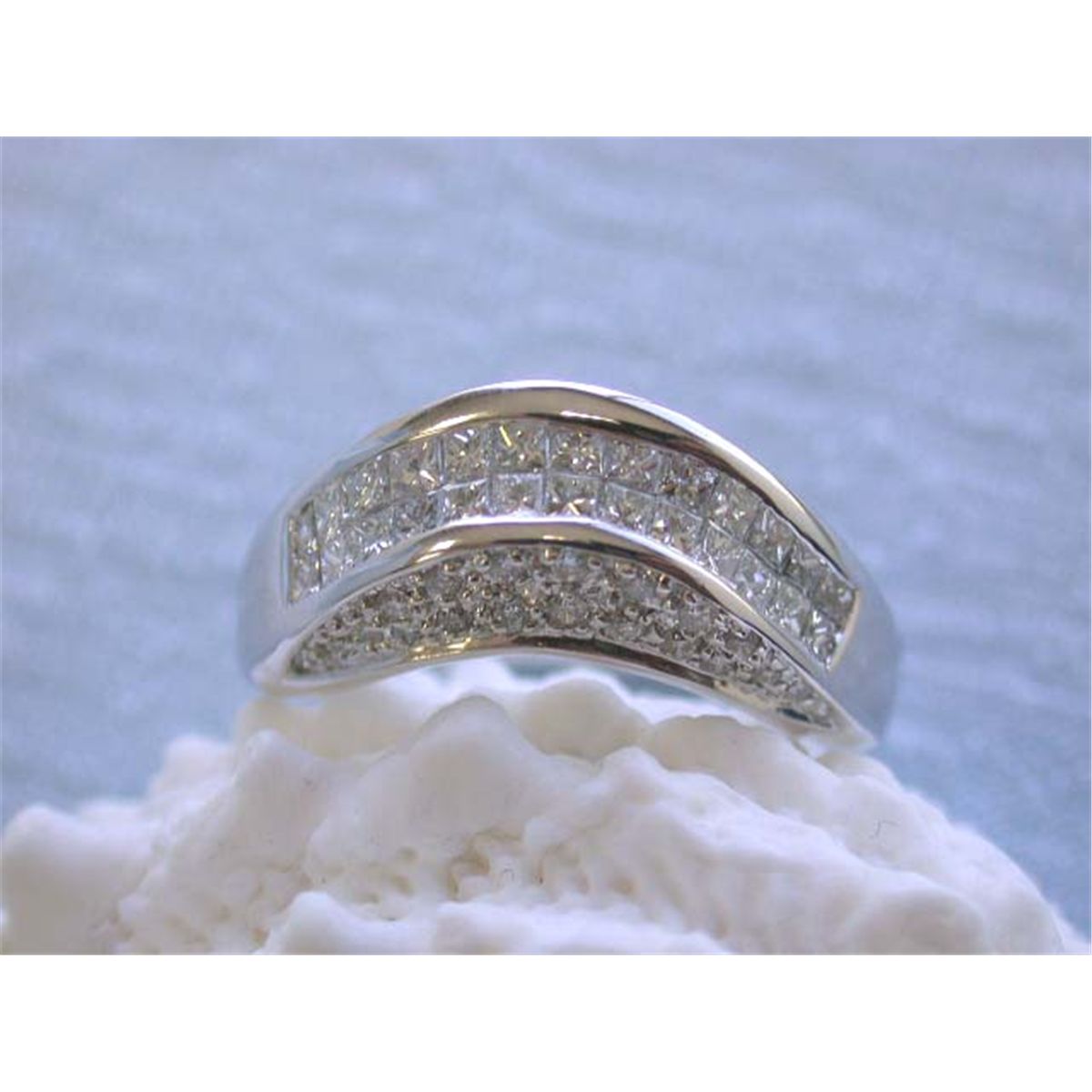 14k White Gold Ring with Round Cut Diamonds - 0.13 carat, G color and VS clarity and Princess Cut Diamond - 0.65 carats, G color and VS clarity. The ring size is 6.5 and weighs 5.32 grams