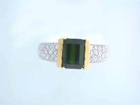14k Gold Ring with Diamonds - 0.20 carat and Tourmaline - 1.55 carats. The ring size is 7 and weighs 4.60 grams