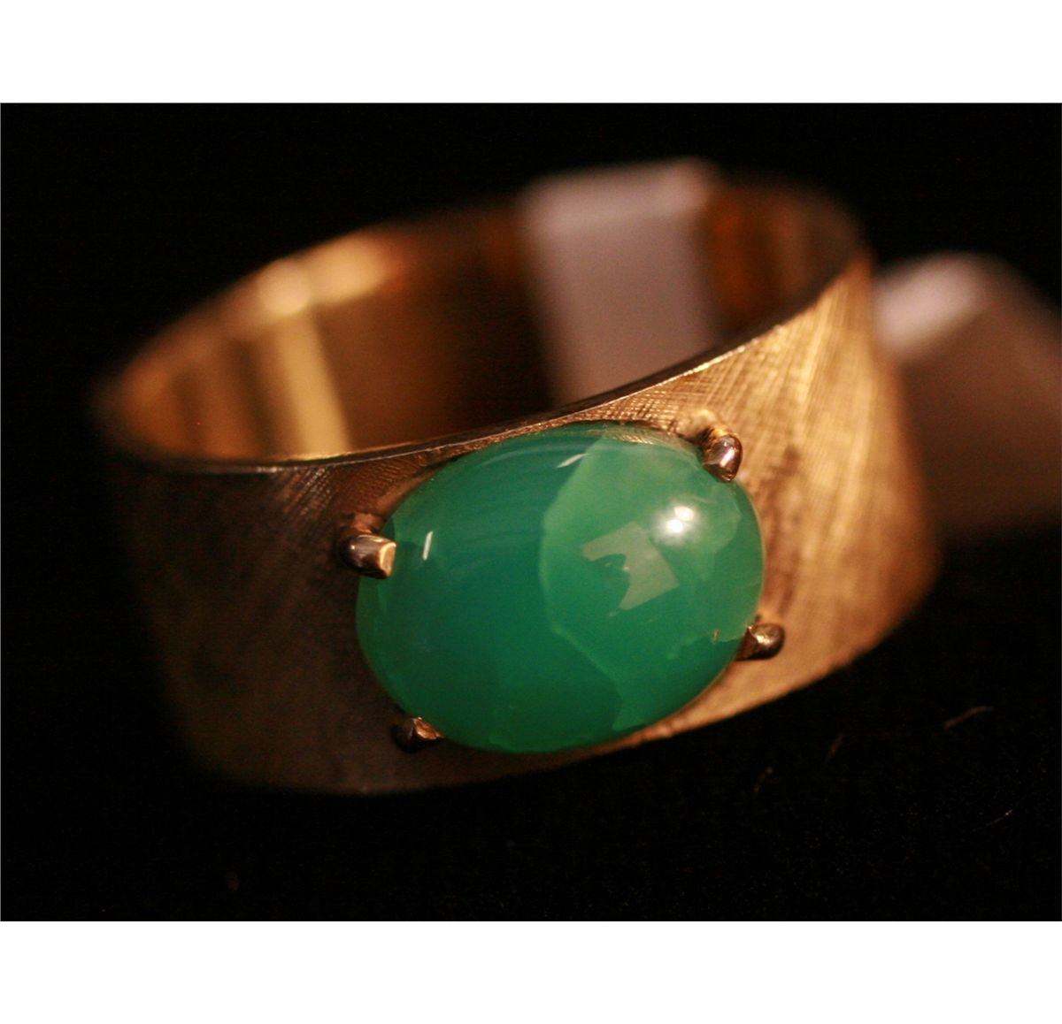 14k Yellow Gold Ring, 7.9mm wide band prong set with one cracked nd broken green stone (no value), Size 5, Total weight 5.3 grams, -227016-