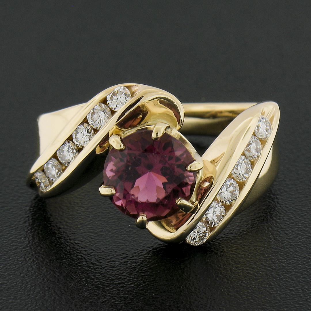 14k Gold Round Pink Tourmaline w/ 0.30ctw Diamond Channel Accents Bypass Ring