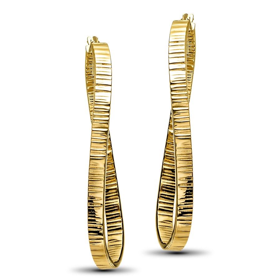 14k Gold Textured Oval Hoop Earrings