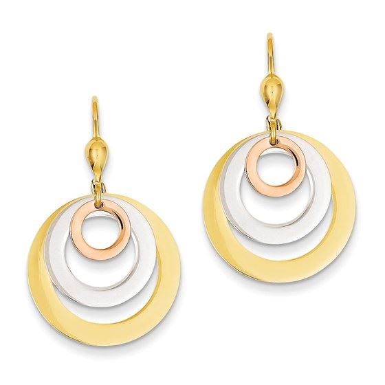 One piece 14k Gold Tri-color Circle Leverback Dangle Earrings