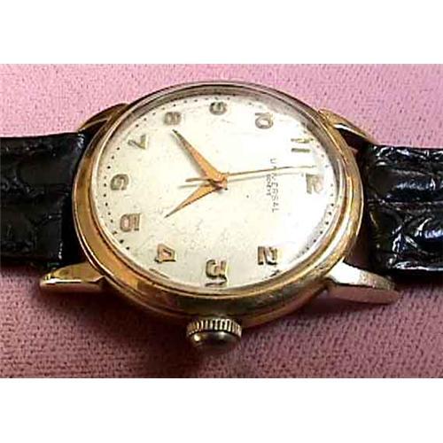 <tr><td>Title:14k Gold Universal Automatic Men's Watch 14kt</td></tr>
