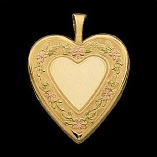 Very Beautiful 14k Yellow Gold HEART LOCKET featuring PINK Gold Flowers & GREEN Gold Leaves! The Locket measures 20.50MM x 19.25MM and it opens for photos.