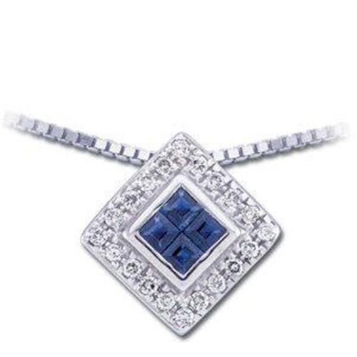 This beautiful Necklace is 14k White Gold and it features 4 PRINCESS CUT BLUE SAPPHIRES surrounded by 20 SPARKLING DIAMONDS! The Sapphire Total Weight = .50 Carats and the Diamond Total Weight = .25 Carats! The Chain on the Necklace is 14k White Gold.